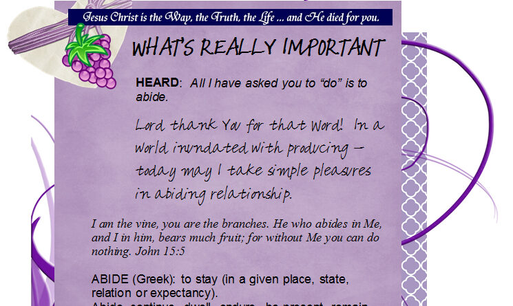 Read More7/11/25 TO-DO LIST HEARD: What am I asking you to do? Right now. Not tomorrow. Not yesterday. Just abide. What does